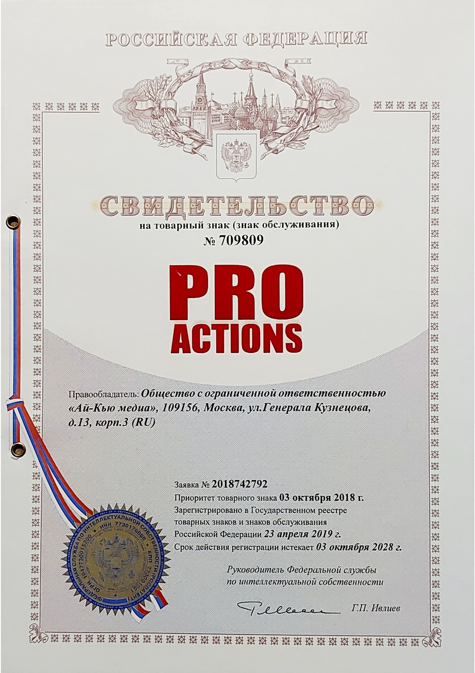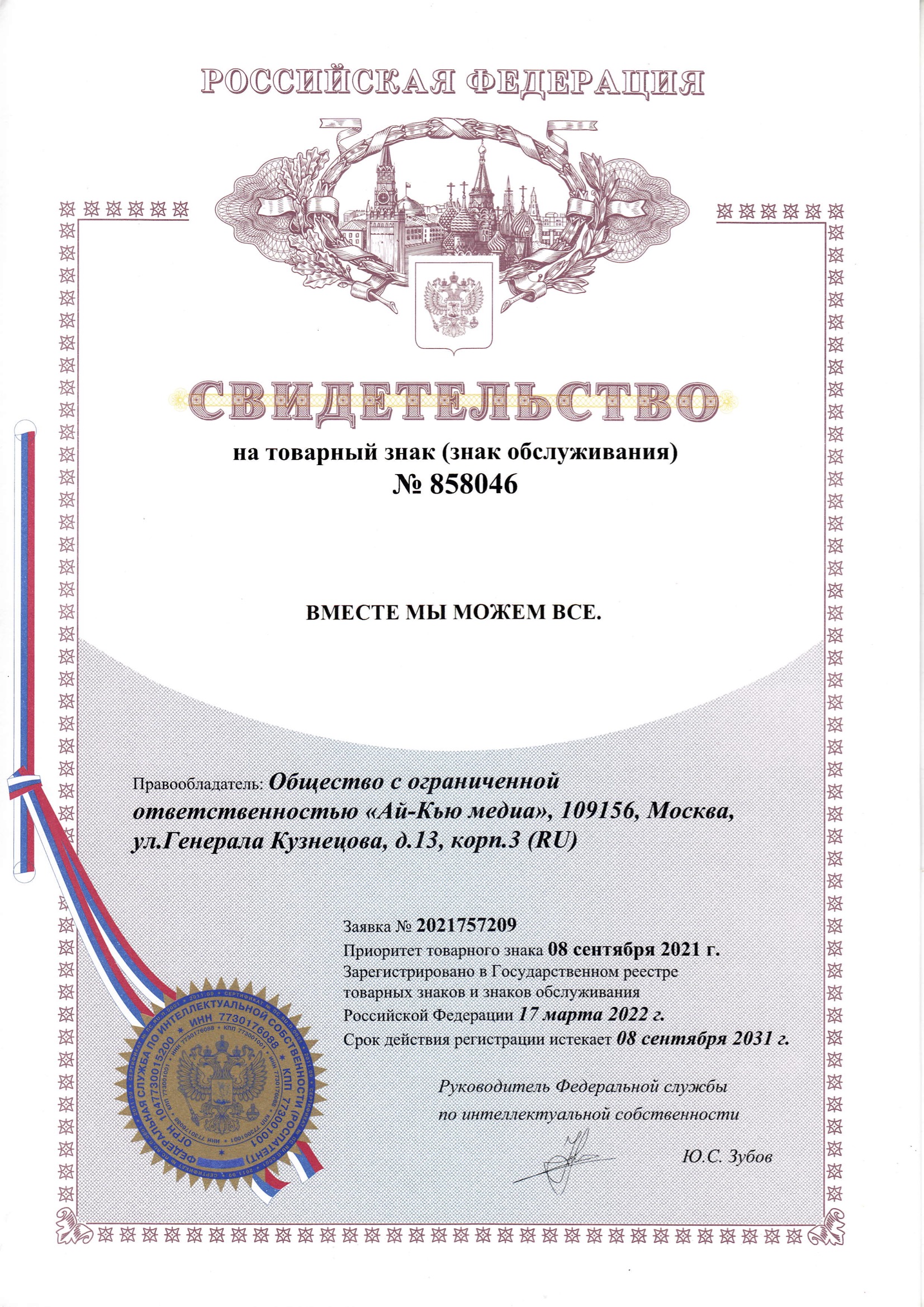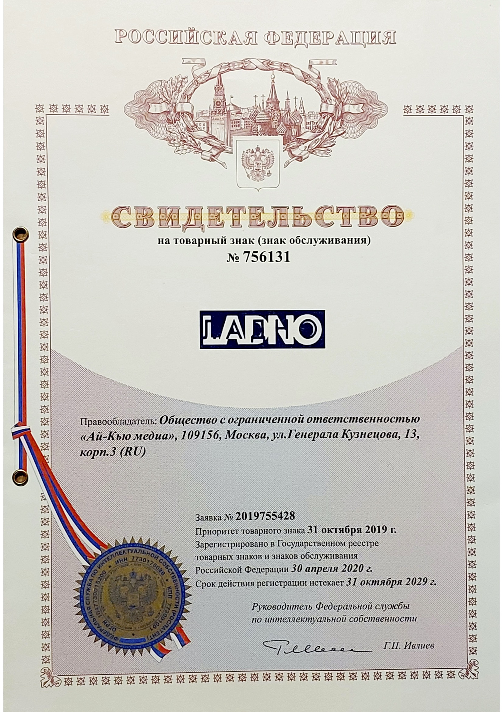 Товарные знаки, зарегистрированные на ООО «Ай-Кью медиа».